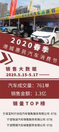 5月17日,为期三天的北仑区“2020春季港城惠民汽车消费节”圆满落下帷幕。统计数据显示,现场共成交汽车761单,销售金额达1.3亿,接近北仑车市三月销量的50%。